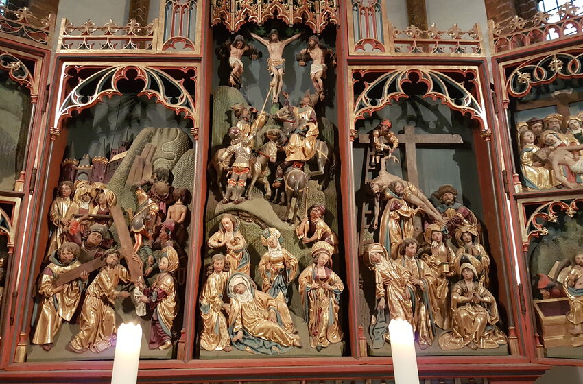Fällt Ihnen etwas an der Kreuzigungsszene auf dem Schnitzaltar der Kirche in Schinna auf? Ich selber sehe dieses 500 Jahre alte Kunstwerk eines unbekannten Meisters fast wöchentlich und bin da ...