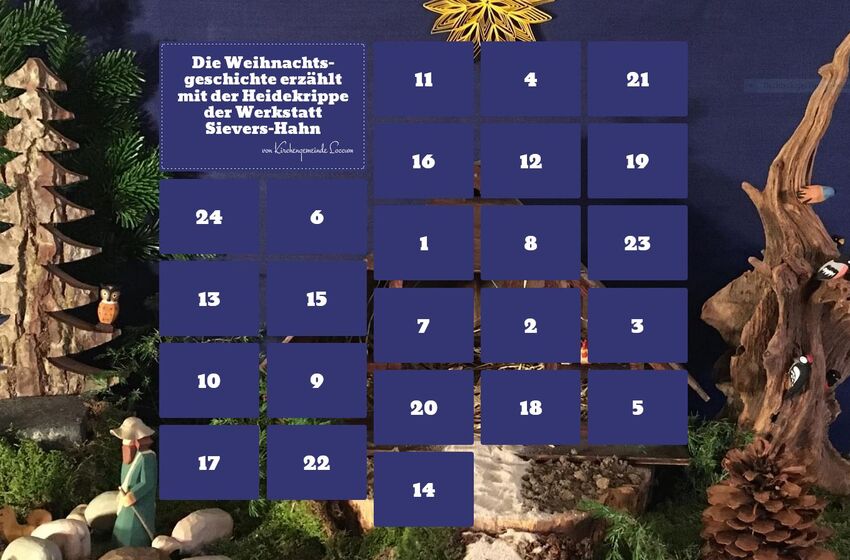 In der Kirchengemeinde Loccum ist mit Barbara Kruhöffer und einer ihrer wunderschönen Krippen ist ein Adventskalender entstanden. Die Weihnachts-geschichte erzählt mit der Heidekrippe der ...