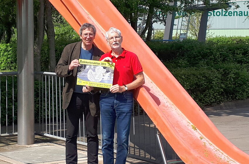 Pünktlich zu Beginn der Freibadsaison brachten die beiden Vorsitzenden der Diakoniestiftung das neue Werbeplakat für die diesjährige Freibadsaison in das Stolzenauer Freibad. Hartmut Willig, ...