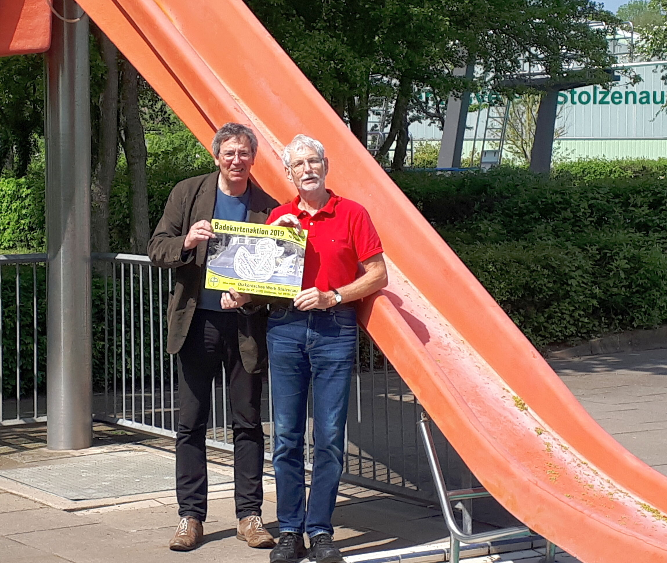 Pünktlich zu Beginn der Freibadsaison brachten die beiden Vorsitzenden der Diakoniestiftung das neue Werbeplakat für die diesjährige Freibadsaison in das Stolzenauer Freibad. Hartmut Willig, erster Vorsitzender der Diakoniestiftung, verwies auf die große Nachfrage der letzten Jahre.