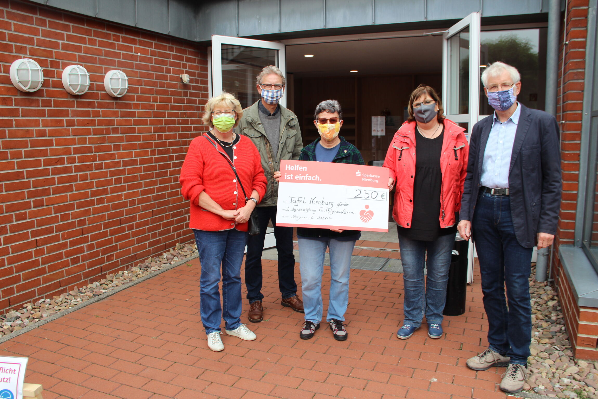 Die Ausgabestelle der Nienburger Tafel an jedem Mittwoch in Stolzenau ist für ungefähr 80 Männer und Frauen aus dem Südkreis des Landkreises Nienburg seit langem eine unverzichtbare Hilfe. Gern nahm die Diakoniestiftung des Kirchenkreises Stolzenau-Loccum die diesjährige Diakoniewoche zum Anlass, um Beate Kiehl und ihrem Team ein kleines Dankeschön zu überreichen. Der Vorsitzende der Stiftung Hartmut Willig, Superintendentin Dr. Ingrid Goldhahn-Müller und Wilfried Buschhorn überreichten einen Scheck in Höhe von 250,-€. Eine willkommene Hilfe fürs Betanken der Lebensmittelwagen, aber auch zur Bereitstellung von Hygieneartikeln wie Desinfektionsmitteln und Plexiglasscheiben, die während der Corona-Zeit nötig geworden sind.