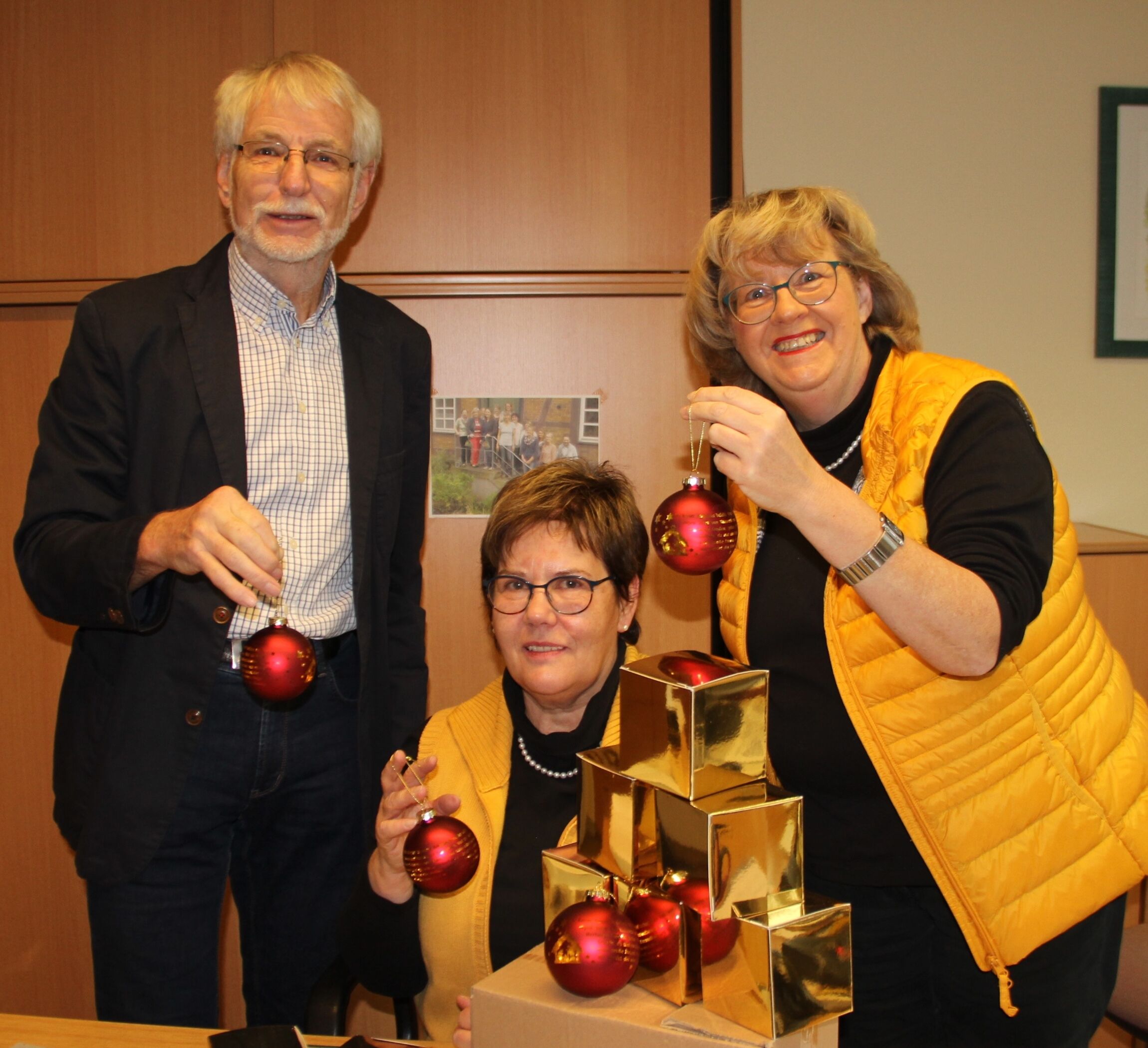 Die Kuratoriumsmitglieder der Diakoniestiftung verkaufen die Weihnachtskugeln auf dem Stolzenauer Weihnachtsmarkt am 14. und 15. Dezember 2019.