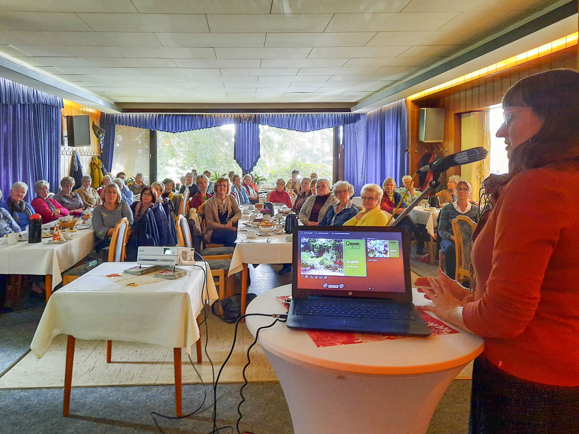 Nach einem sehr guten Frühstück referierte Frau Ute Luginbühl vom BUND Nienburg weiter zu diesem Thema. Frau Luginbühl arbeitet mit Kindern in der BUND Kinderwildnis und in Kindergärten und Kindergruppen. Zum Thema Tiere, Menschen und Pflanzen arbeitet sie in diesen Gruppen und geht der Frage nach, welche Verantwortung haben wir Menschen gegenüber der Schöpfung Gottes und wie bewahren wir sie.