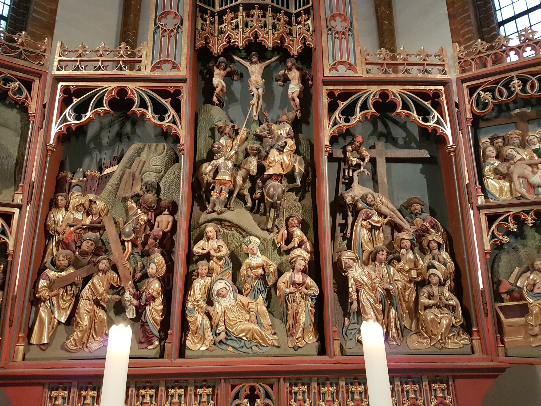 Fällt Ihnen etwas an der Kreuzigungsszene auf dem Schnitzaltar der Kirche in Schinna auf? Ich selber sehe dieses 500 Jahre alte Kunstwerk eines unbekannten Meisters fast wöchentlich und bin da noch nie drauf gestoßen. Aber jetzt! Corona sei es gedankt oder geschuldet, wie man nun will. Auf dieser Darstellung ist niemand zu sehen, der unter dem Kreuz betet. Seit dem 15. März hat auch in vielen unserer Kirchen niemand mehr gebetet. Keine öffentlichen Gottesdienste gab es seitdem, weil der Gesetzgeber es so gefordert hat. Manche Menschen haben das beklagt. Andere dagegen haben Verständnis dafür gezeigt, dass es angesichts der Pandemie angemessen ist und für den Glauben nicht abträglich, wenn auf das öffentliche Gebet verzichtet wird.