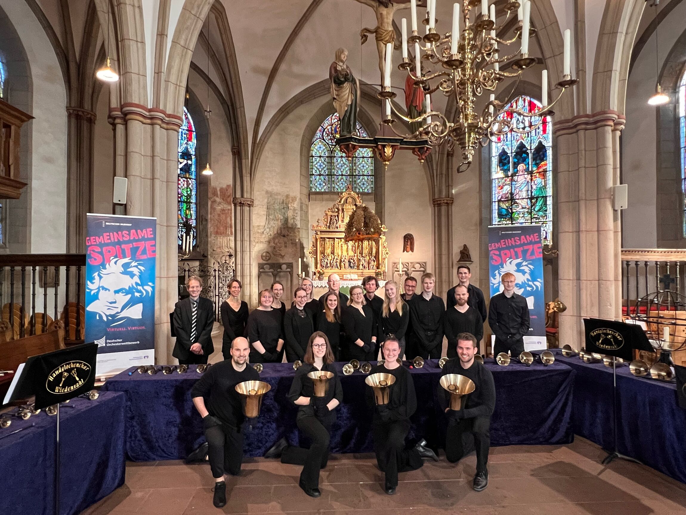 Nachdem der Handglockenchor Wiedensahl 2019 in Verden zum Deutschen Orchesterwettbewerb weitergeleitet wurden, haben sie am 10. Oktober diesen Jahres ihr digitales Wertungsspiel absolviert. Gestern wurden die Ergebnisse mitgeteilt und sie wurden erneut mit dem Prädikat "mit hervorragendem Erfolg teilgenommen" ausgezeichnet. Nach 2012 (Hildesheim) und 2016 (Ulm) ist der Handglockenchor Wiedensahl nun zum dritten Mal in Folge Preisträger des Deutschen Orchesterwettbewerbs geworden.