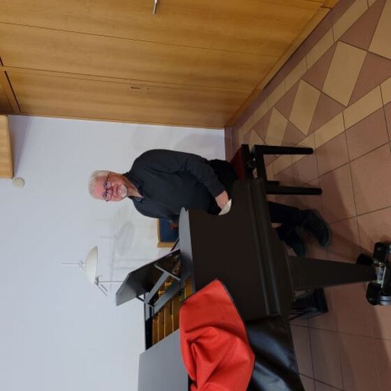 Organist Herr Risch stimmte auf dem Flügel Weihnachtslieder an es wurde fröhlich gesungen.