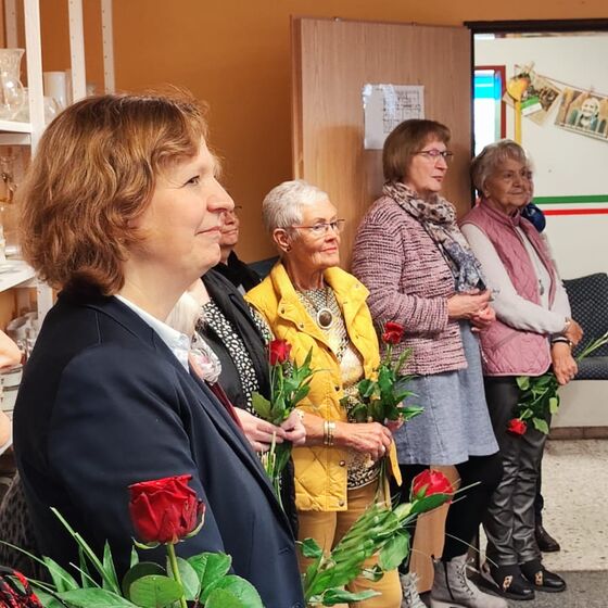 Die Leiterin, Ingelore Westhoff, bedankte sich sehr herzlich bei ihren Mitarbeiterinnen für den langjährigen, treuen Einsatz. Im Laufe der Jahre habe sich ein harmonisches Miteinander entwickelt, in dem alle sich gegenseitig vertreten und unterstützen. „Wer Gutes tut, erfährt selbst Gutes.“, sagte sie. „Das ist das Tolle an der Sache: zum einen hat man die Möglichkeit, anderen zu helfen und damit Gutes zu tun und andererseits wird man durch diese Arbeit hier selbst Teil einer Gemeinschaft, die einen trägt.“