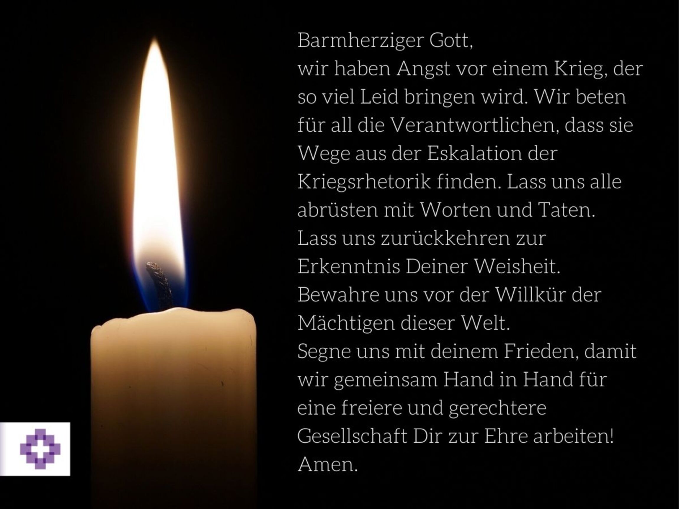 Gebet für die Urkaine Im Osten Europas beginnt ein Krieg. Mit großem Erschrecken hören wir die Nachricht von der Invasion Russlands in die Ukraine. Menschen erleben Gewalt und Leid. Wir bringen ihre Not vor Gott. Wir beten für den Frieden: