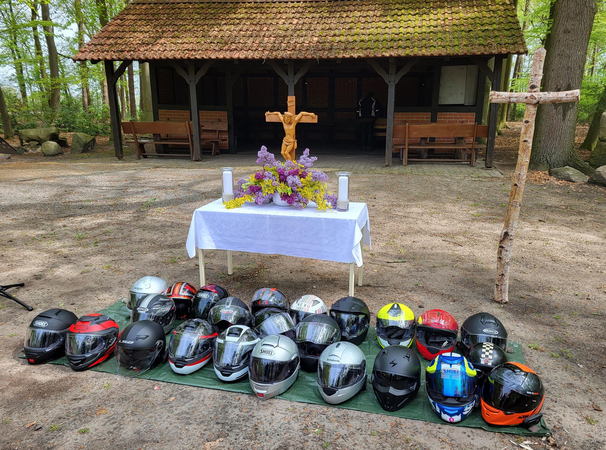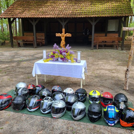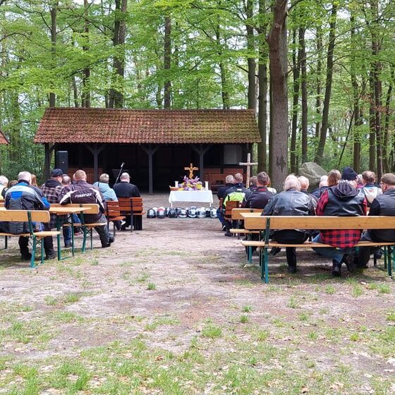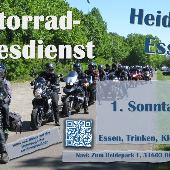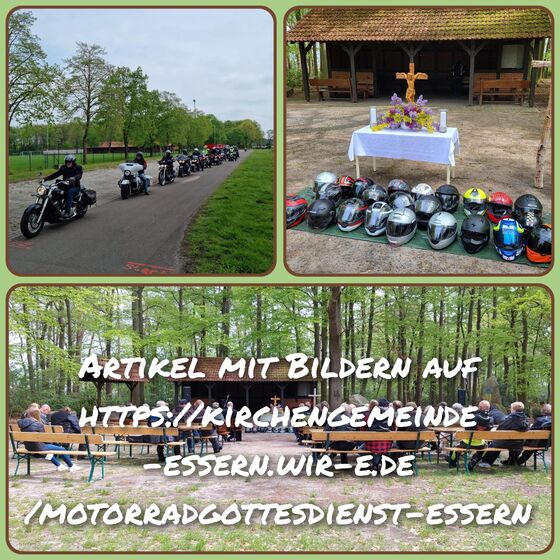 Essern: So oft, wie die Wettervorhersagen sich änderten, konnte einem schon schwindelig werden, aber am Sonntagmorgen hatte der Wettergott ein Einsehen und es blieb zwar frisch, aber trocken. Ideales Motorradwetter also und so konnten wir knapp 50 motorisierte und unmotorisierte Gäste zu unserem Motorradgottesdienst im frühlingshaften Heidepark begrüßen. Sogar die Pastorin Margit Beubler war spontan angereist.