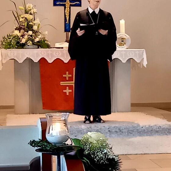 Die Gemeinde hatte die Kirche mit Kranz und maritimer Deko für den neuen „Kapitän“ wunderbar geschmückt, Martin Burek an der Orgel und der Posaunenchor gestalteten den Gottesdienst musikalisch.
