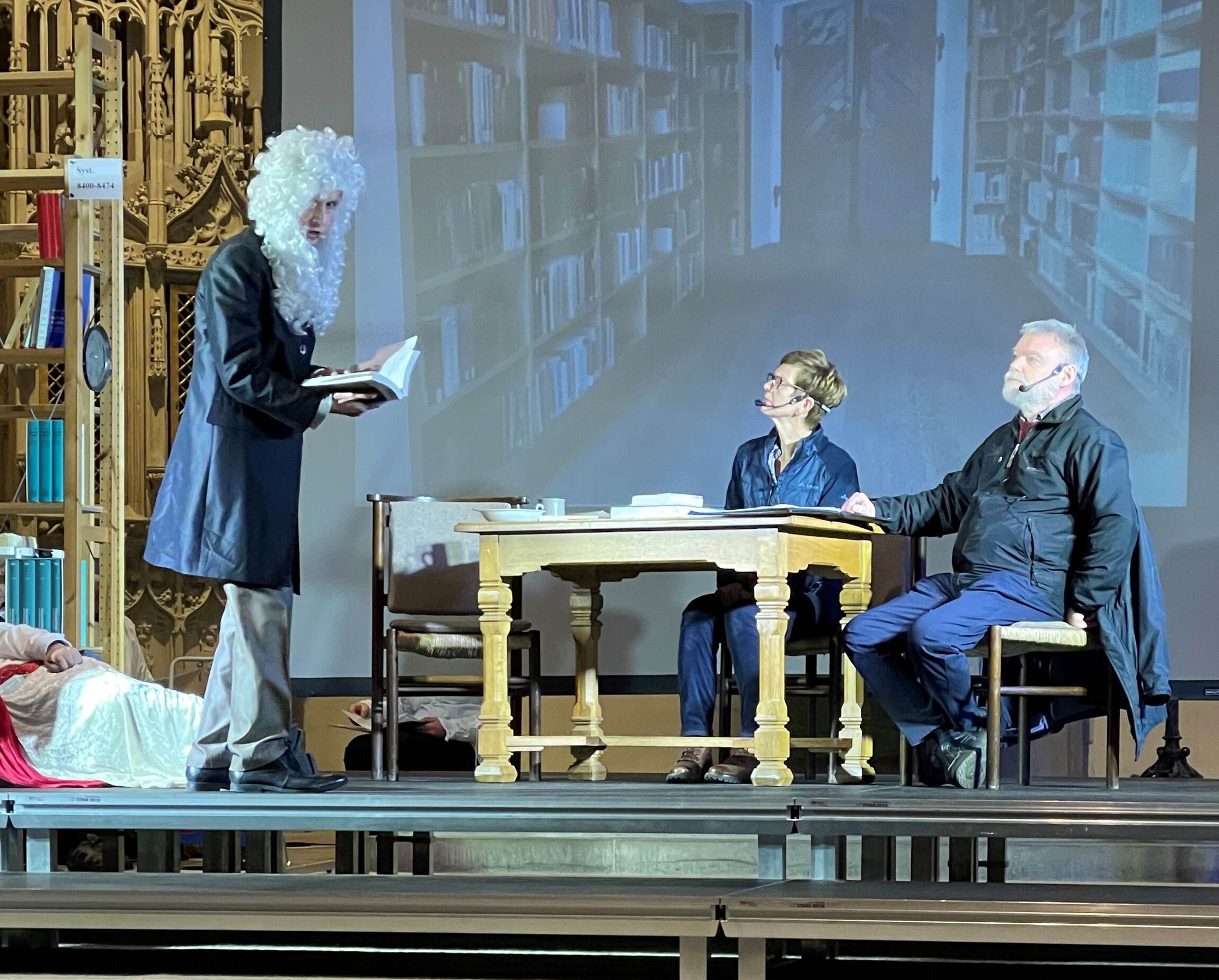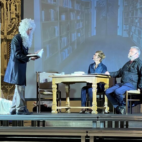 Viele ließen sich zum diesjährigen Pastorentheater am Reformationstag in die Loccumer Stiftskirche einladen! Die Loccumer Klosterbibliothek war der Hintergrund für die Frage des Theaterstücks: Wer ist Gott – für mich? Wo finde ich ihn? In den Büchern der Bibliothek? Antworten boten jedenfalls die Glaubenserzählungen berühmter Christen der Geschichte – die plötzlich nicht nur in Büchern zu finden waren, sondern höchstpersönlich und quicklebendig auf der Bühne standen! Nicht einfach für das Bibliothekspersonal, wenn es zwischen den streitbaren Persönlichkeiten der Geschichte dann plötzlich zu Mord und Totschlag kam… .