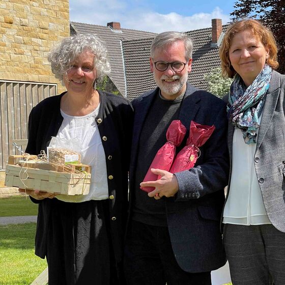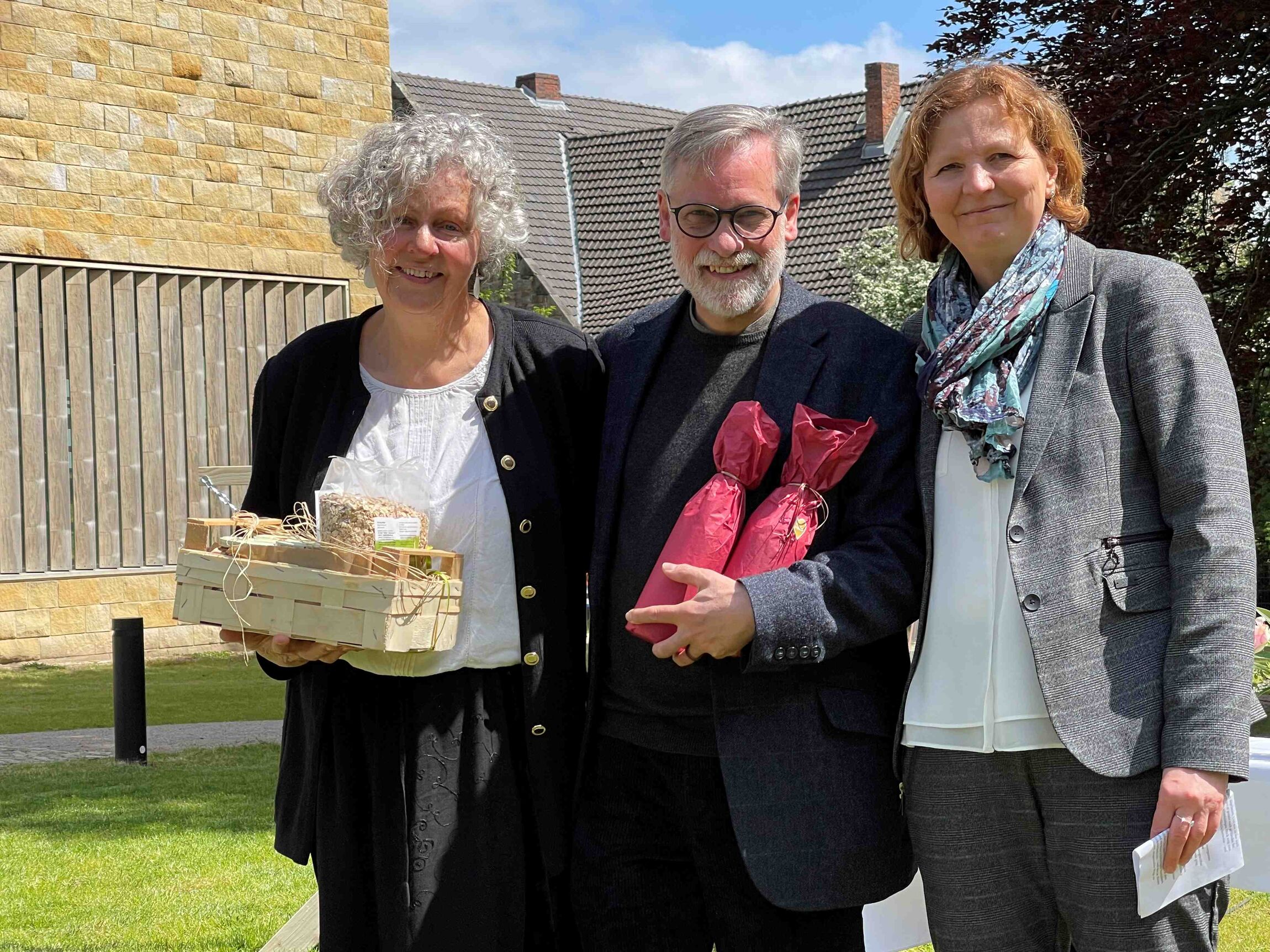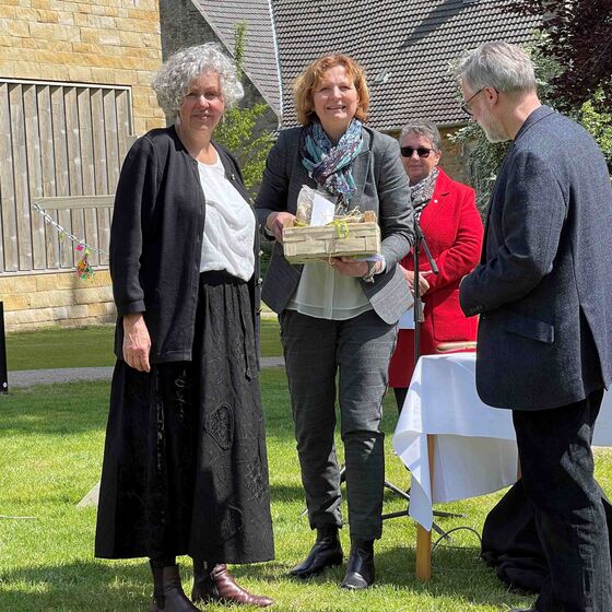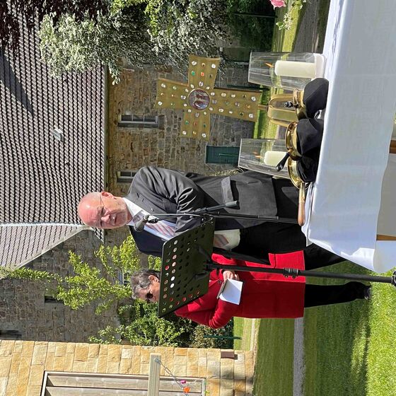 Loccum: Unter einem strahlend blauen Mai-Himmel versammelten sich Hunderte zu einem ökumenischen Himmelfahrtsgottesdienst in Priors Garten im Kloster Loccum, gestaltet von Haupt- und Ehrenamtlichen aus der Stiftsregion und den Posaunenchören aus Loccum und Wiedensahl. Es lag Abschied in der Luft – nicht nur aufgrund der Himmelfahrtsgeschichte, die den endgültigen Abschied des auferstandenen Jesus von seinen Freunden erzählt, sondern auch, weil das Pastorenehepaar Corinna und Joachim Diestelkamp in den Ruhestand verabschiedet wurde. Trost in allem melancholischen Abschiedsschmerz war das, was schon vor 2000 Jahren die erste Christengemeinde tröstete: Es bleiben ja Segensspuren zurück, schöne Erinnerungen, gute Verbindungen. Deutlich wurde das in den herzlichen Grußworten zum Abschied, überbracht von Superintendentin Sabine Schiermeyer, dem Prior des Klosters Arend de Vries, dem Kirchenvorstand der Kirchengemeinde Loccum, die sogar ein Ständchen sangen, und der Ortsbürgermeisterin Dörte Zieseniß. Zwei Apfelbäume werden das Ehepaar an den neuen Wohnort begleiten, behängt mit Hunderten guter Wünsche aus der Gottesdienstgemeinde. Beim sich anschließenden Fest war bestens für das leibliche Wohl gesorgt; das Feuerwehrorchester Loccum untermalte das gemeinsame Essen und Plaudern.