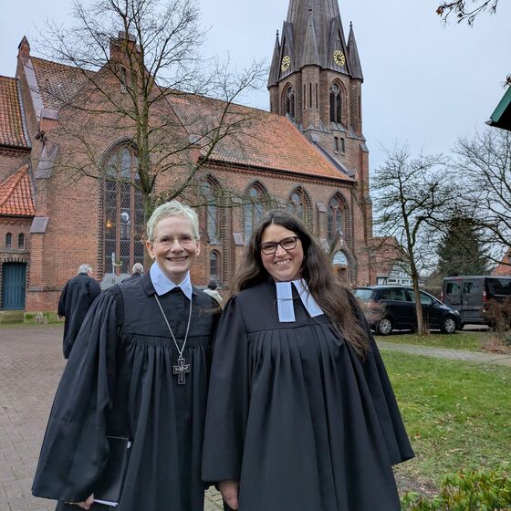 Im Gottesdienst haben verschiedene Assistentinnen und Assistenten aus Sindy Meier-Kimmels persönlichen Umfeld mitgewirkt und sie für ihren Dienst als Pastorin gesegnet. Darunter ihre Patentante Helga Clausing, die nach dem Tod der Mutter eine enge Vertraute geworden ist. Außerdem Freundin Christina Richter, Pastorin im Ruhestand aus Quakenbrück sowie Mentor Pastor Ralf Halbrügge, aber auch Menschen aus ihrem neuen Arbeitsfeld wie Birgit Glißmann, Kirchenvorsteherin in Leese.